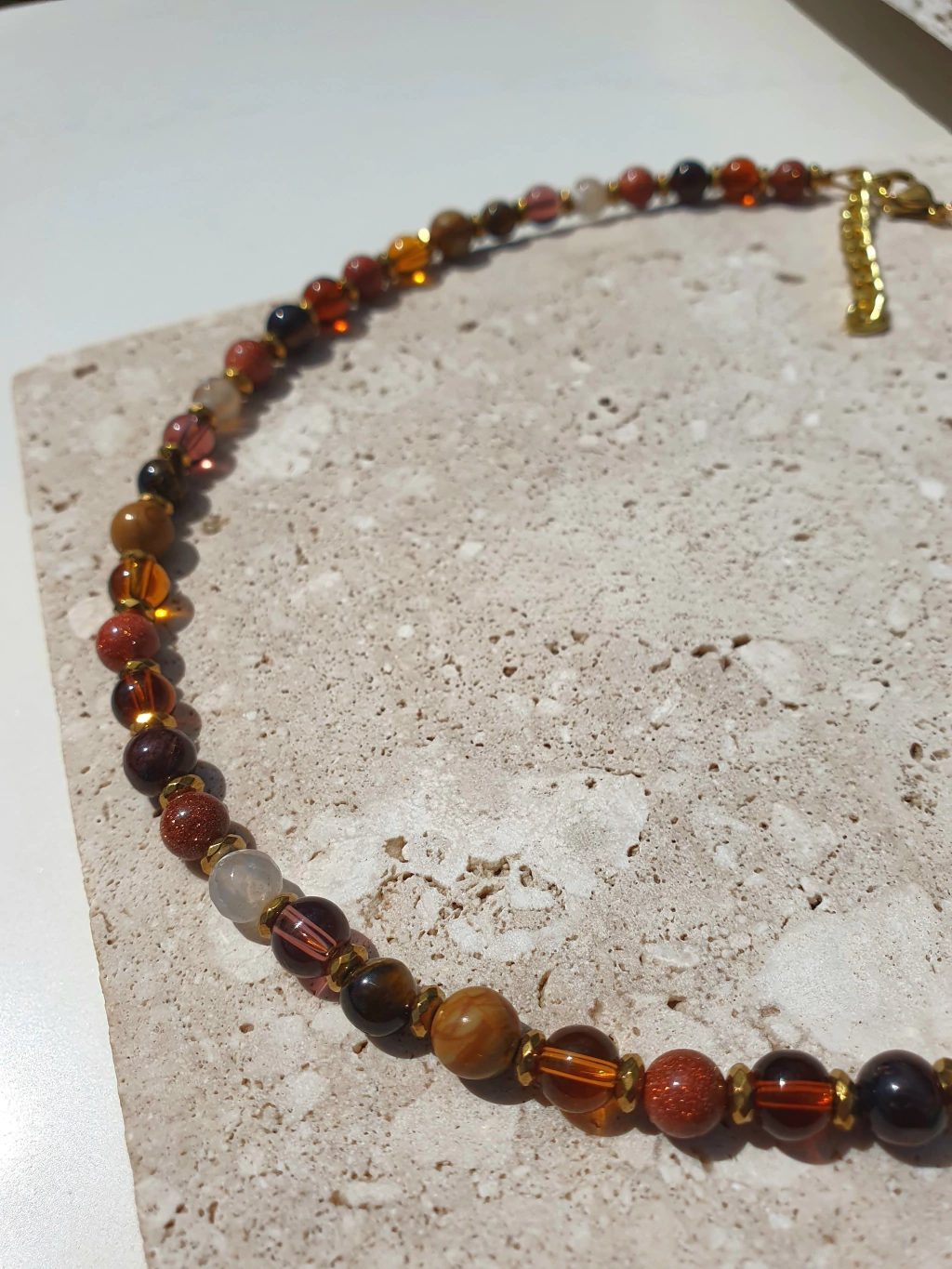 Collar mezcla de piedras y detalles de vidrio separados por Hematite dorada