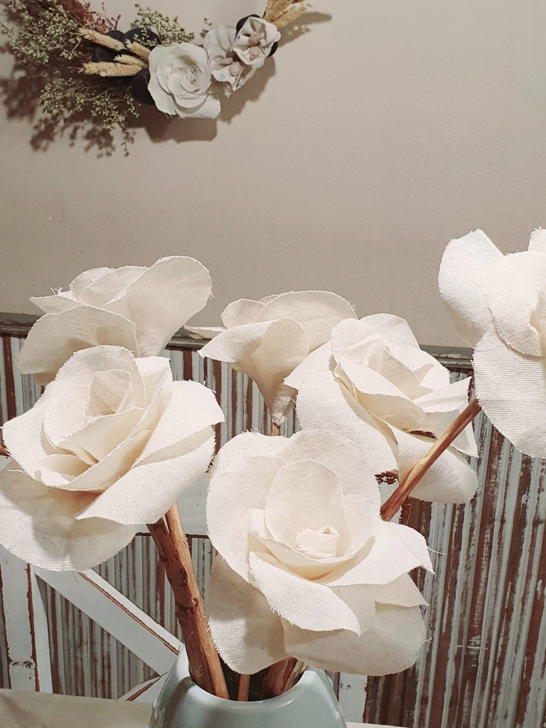 flor de tela de más de 15 cm cabo largo de 40 cm aprox ideal para floreros grandes